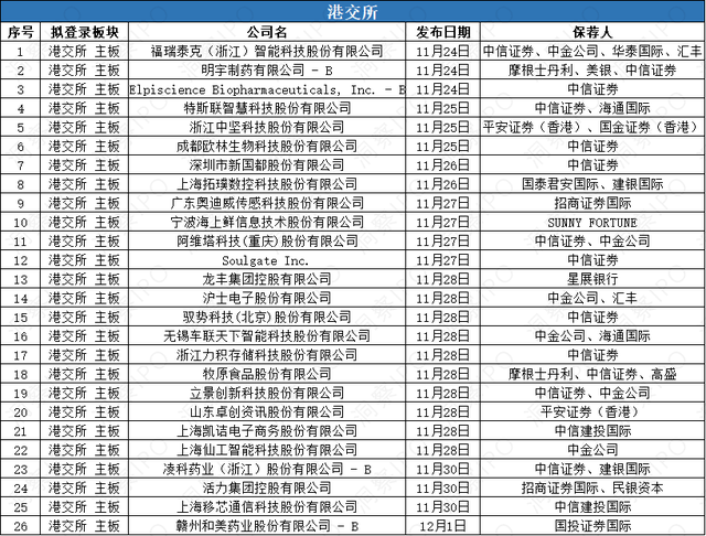 11月25日,浙江中坚科技股份无限公司(简称:中坚科技)向港交所从板递交招股书,拟“A+H”,保荐报酬安然证券()、国金证券()。